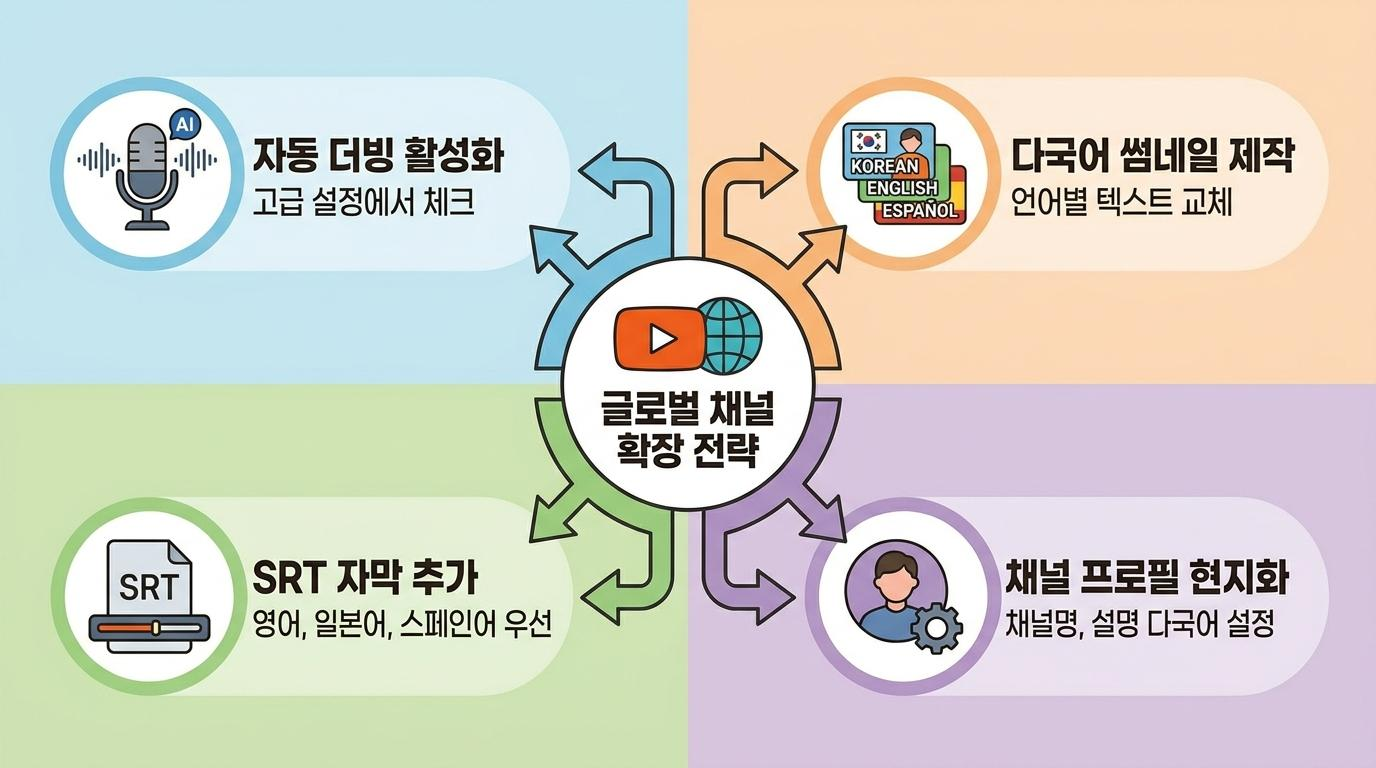 다만 모든 언어를 한꺼번에 추가하려는 욕심은 금물입니다. 번역의 정확성과 지속적인 관리를 위해서는 실제로 지속 가능한 범위 내에서 선택과 집중을 하는 것이 장기적으로 더 효과적입니다. 미국(영어)과 일본(일본어)을 우선순위에 두고, 이후 채널 성장에 따라 중국어권이나 스페인어권으로 확장하는 단계적 접근이 권장됩니다.