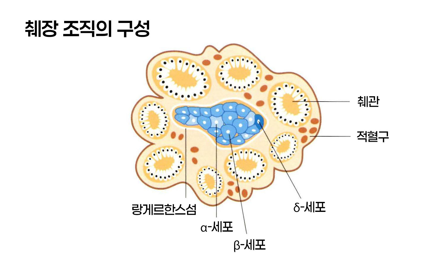 췌장은 외분비와 내분비라는 두 가지 기능을 동시에 수행하는 독특한 구조를 가집니다. 외분비 조직은 우리가 음식을 소화하는 데 필수적인 소화효소를 만들어 소장으로 보냅니다. 반면 내분비 조직은 랑게르한스섬이라 불리는 특별한 세포 집단을 통해 여러 호르몬을 분비하며, 이 호르몬들이 바로 우리 몸의 혈당을 섬세하게 조절하는 핵심적인 역할을 합니다. 마치 한 기관이 두 가지 중요한 임무를 동시에 완벽하게 수행하는 총사령관과 같습니다.